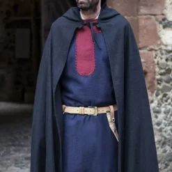 This cloak with hood keeps you warm during all types of cold and bad weather. Cloaks like this were worn during the High and Late Middle Ages.