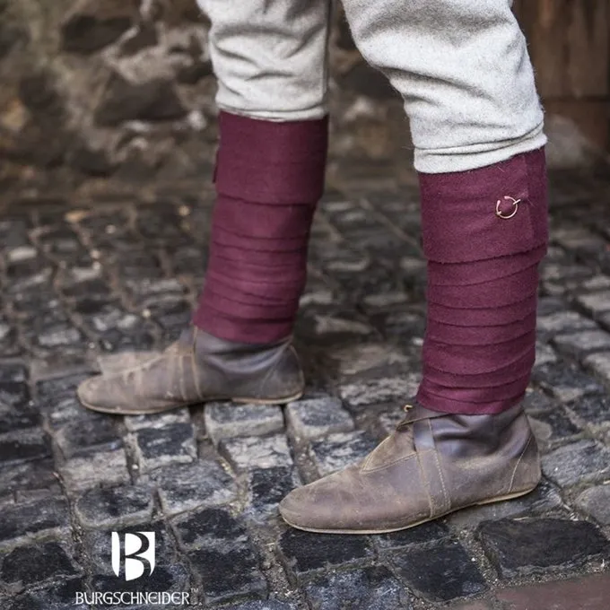 Since the 2nd/3rd century archaeological evidence of leg wrappings in the Germanic areas of Europe exists. Leg wrappings were worn by the Romans and Hadrian’s wall, Byzantines, Franks, Alemanni, Bavarians, Wenden (Slavs), Normans, Vikings and other peoples of Central and Northern Europe. The most commonly used materials were felt, wool linen or leather.