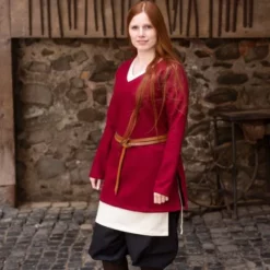 This tunic is perfect for ladies who want do dress like a shield maiden or medieval female warrior for LARP or Cosplay, or for example a Vikings or Game of Thrones costume. The tunic has a split on the sides so you can run and move well. For a nice color effect you can combine it with an undertunic in a different color.