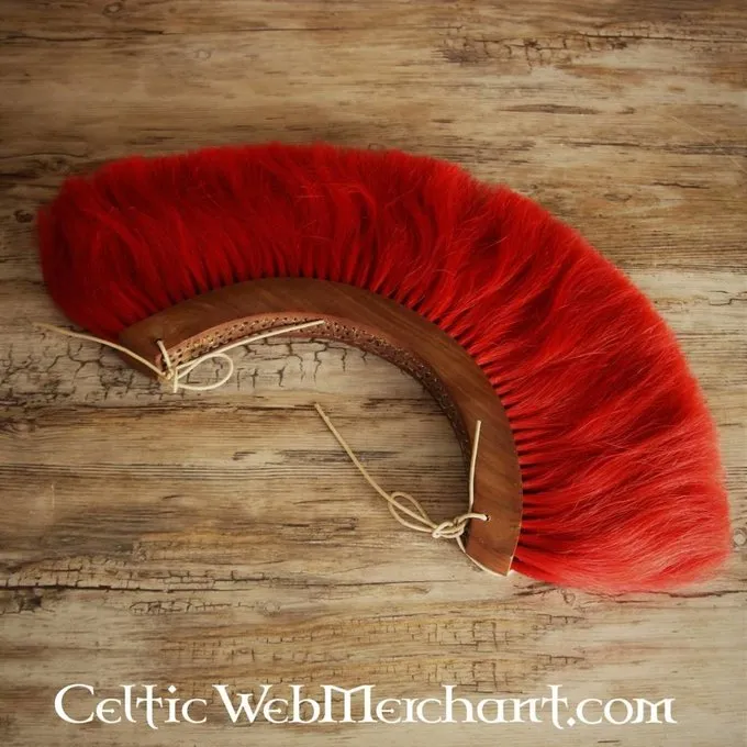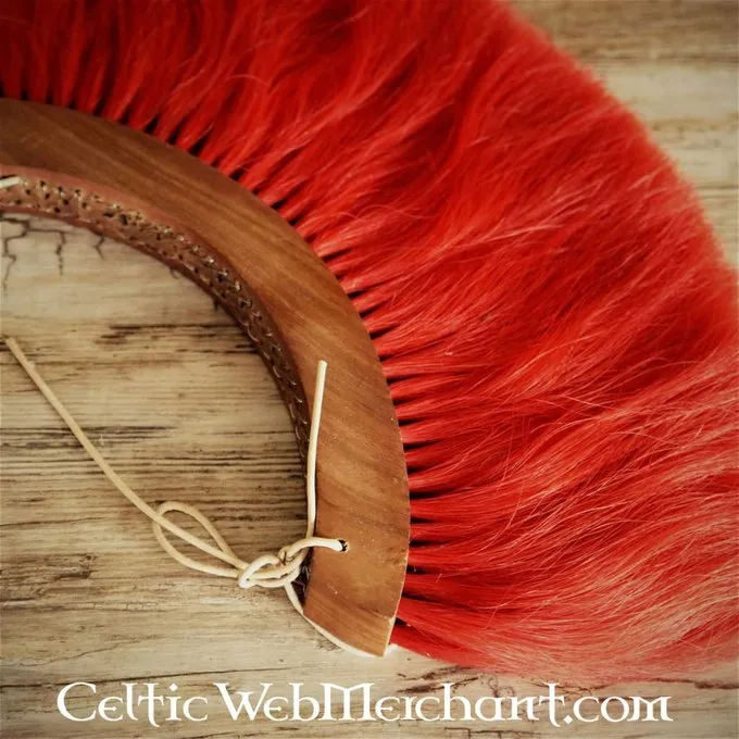 Red crest for Roman helmets. It can be secured with a crest holder. The crest is made of red dyed horsehair. It weighs 350 grams.
