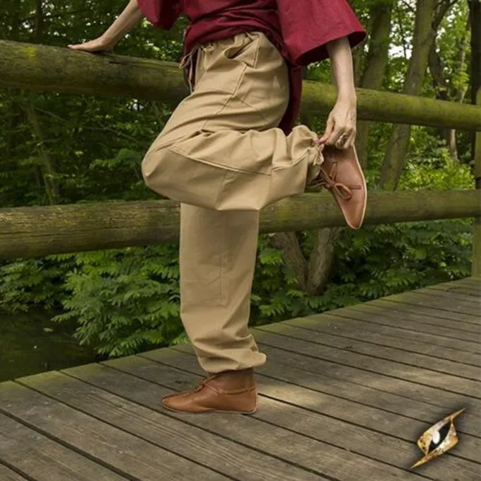 These trousers for kids are a great basis for most outfits. Historically, pants like this were worn for centuries. The trousers are therefore suitable for medieval up to nineteenth century reenactment. For example, think of pirates, sailors, medieval people, cowboys, the Italian city states and many other historical settings. For LARP and Cosplay, this is a beautiful pair of trousers for almost every outfit. You can even use it for multiple outfits, because of its basic design it fits under almost every tunic or shirt.