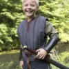 This gambeson offers protection in re-enactment and LARP. The gambeson has removable sleeves and you can close it with leather straps. It reaches to the hips. The gambeson consists of layers of cotton canvas with polyester padding, stitched in vertical lines in the European medieval style. The gambeson has an upward collar. You can wear it in combination with a padded collar and arming cap for a more optimal protection of the head and neck. This gambeson is also available in larger sizes.