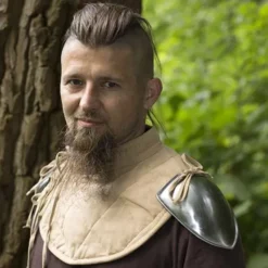 For excellent protection during LARP battles! This set consists of a cotton padded gorget with two pauldrons of 1 mm thick polished steel. Also suitable for re-enactment when you wear them as clothing accessories, but for re-enactment battles the steel is too thin.