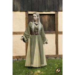 This beautiful Viking dress is based on excavations of original textile remains from the early Middle Ages. Dresses like this were worn by itself or over another dress during colder weather. The dress shows a stunning contrast of two colors. Such color contrasts were common during the early Middle Ages. Gussets are triangular pieces of fabric that are sewn into the skirt to shape the garment to the body, to make the skirt wider and they also provide more freedom of movement. Gussets were used in almost every early medieval dress. This dress is great for re-enactment, historic LARP and Cosplay of series like Vikings or Last Kingdom.