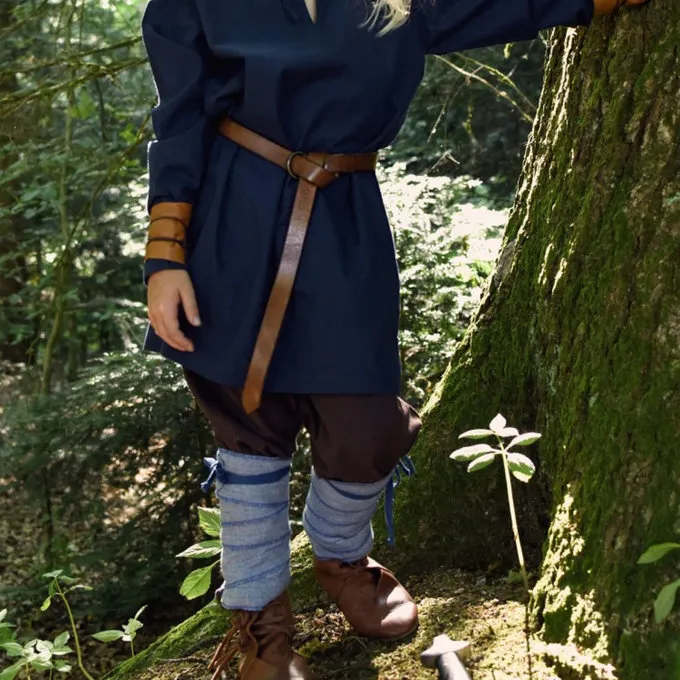 These leg wrappings are based on early medieval originals. Archaeology shows that leg wrappings were worn in the Germanic regions from the 2nd century AD. Leg wrappings were worn by the Romans at Hadrian’s wall, the Byzantines, Franks, Alemanni, Bavarians, Wends (Slavs), Normans, Vikings and other from Central and Northern Europe. Felt, wool, linen and leather were the materials that were used the most. The fabric shows a beautiful historical herringbone motif. The leg wrappings can be fastened with the cotton ribbons which are included in the delivery. They are delivered per pair.