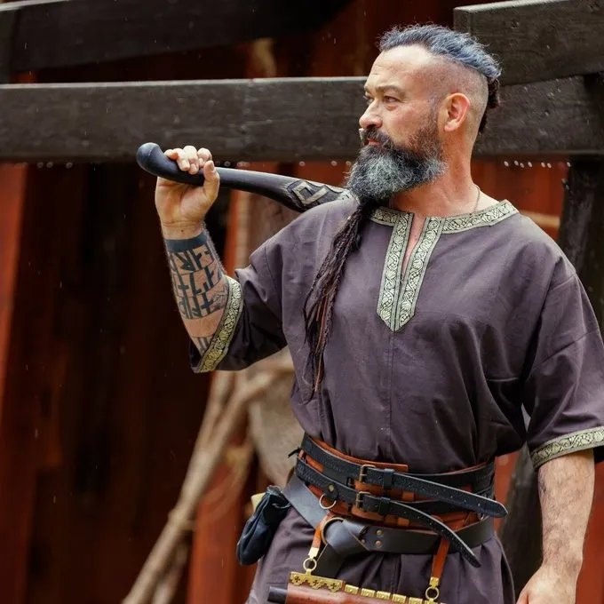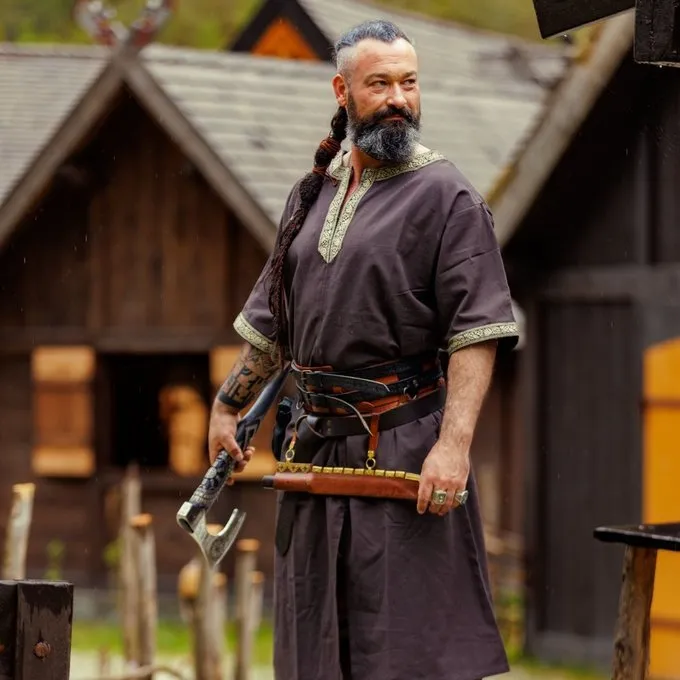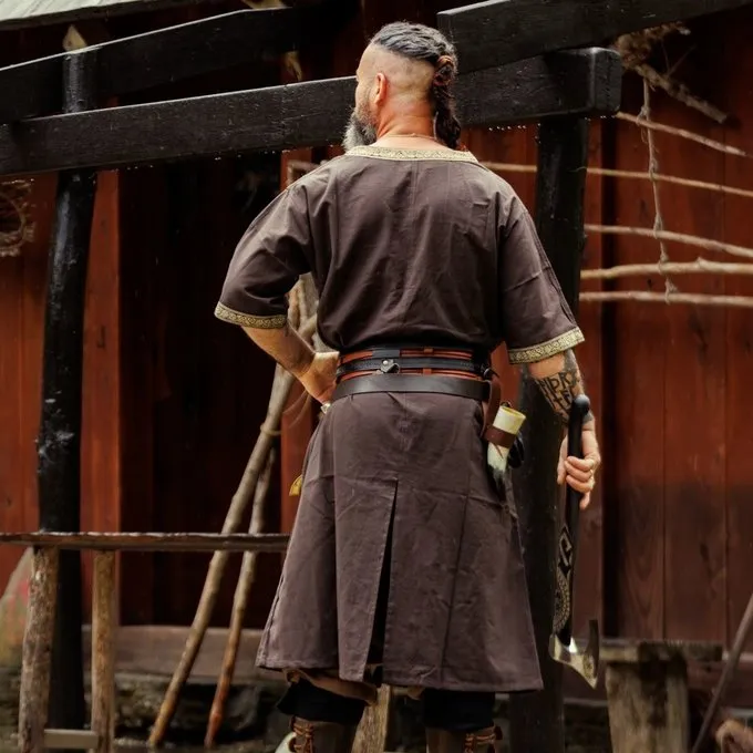 This tunic is made of cotton. It is available in the sizes S up to XXL in the colours black, green, blue, red, cream, light brown or dark brown. Please see the drop down menus above.