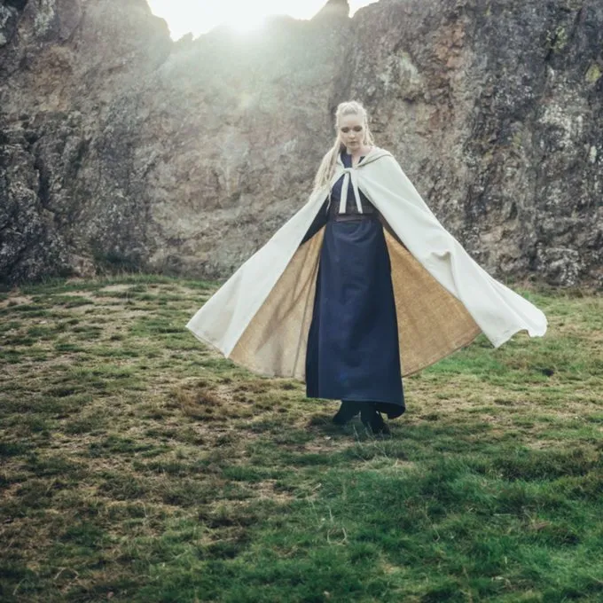 This wool mix cloak has edges with elegantly embroidered patterns. Suitable for both re-enactment and LARP. The cloak has straps at the front for fastening.