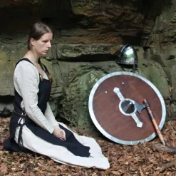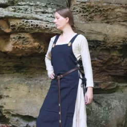 This overgarment is made of cotton and is inspired by the Scandinavian hangeroc. On both sides are cords for an optimal fit.