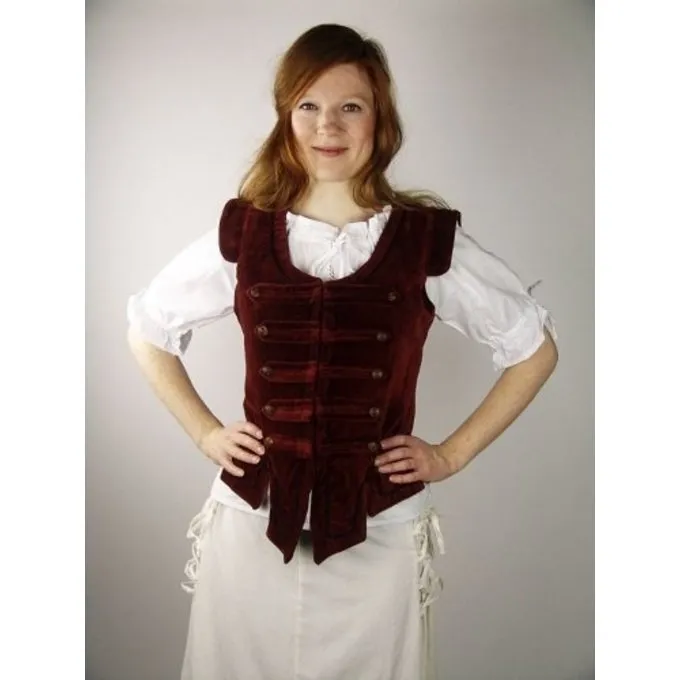 This jacket is made of duvetyn. It is closed with hooks. It has decorative buttons. The jacket is available in size S to XXXL in black and red.
