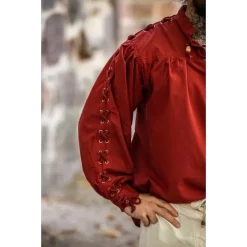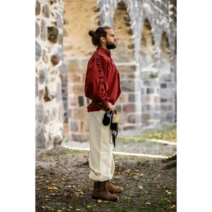 This handy shirt is suitable to wear separately or underneath a doublet or vest. It has laces for an authentic look. The shirt is available in the colors black, red, brown and green.