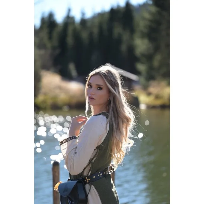 This hangeroc is made in the early medieval / Viking style. It is made of rough cotton and can be closed with cords at the sides.The hangeroc is available in size S/M, L/XL and XXL in black, green, brown and blue
