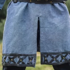 This tunic is perfect for Viking LARP and Cosplay outfits. The tunic is beautifully decorated with leather and rivets, it is also embroidered. It has long sleeves, is made of sturdy cotton and reaches approximately to the knees. This design is inspired by the Rusvik Vikings! The belt on the pictures is sold separately.