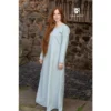 This tunic is perfect for early medieval re-enactment, LARP and Cosplay. It reaches just above the knees and is decorated with beautiful embroidery. The sleeves have a symmetrical pattern consisting of two winding lines in contrasting colors. This embroidery forms an esthetic contrast with the fabric of the tunic and the embroidery at the neckline. This embroidery shows a wolf in the centre with an early medieval knot motif on both sides in several colors. In Old Norse mythology, the wolf Fenrir was a son of Loki, the Viking god of deception. Fenrir grew up to be a cunning and very strong wolf, a great danger to the gods. For this reason they chained Fenrir with Gleipnir: a fine chain from which Fenrir could not break free until the arrival of Ragnarok. In both Viking and Germanic art, wolves were depicted in battle scenes, just like ravens and eagles. The wolf stood for murder, manslaughter, and cunning. Dangerous men were described as wolves, berserkers were also associated with wolves. The decoration of this tunic fits well with the re-enacting of a Viking warrior on the battlefield.