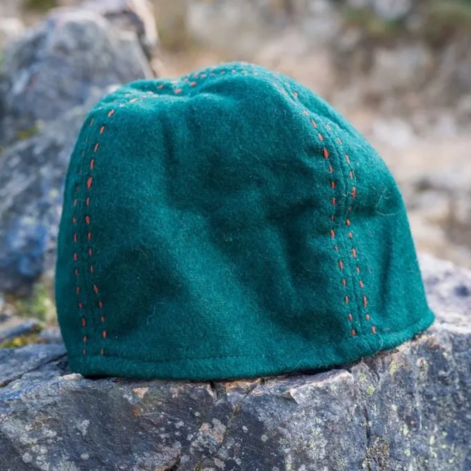 In the cold Viking climates of the north, a hat was a necessity. This Viking hat is based on images in illuminated manuscripts from the early Middle Ages. It has a nice color contrast because of the embroidered stitching. Perfect for Viking photoshoots and as an accessory for your Viking costume at reenactment, Cosplay or LARP. The hat is available in different sizes, so it is suitable for men and women.