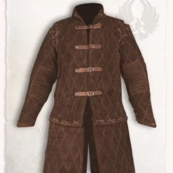 Material: suede leather, cotton, polyester / Colour: brown / Size: S up to XL / Set of gambeson, gambeson arms and tassets / Based on a historical original