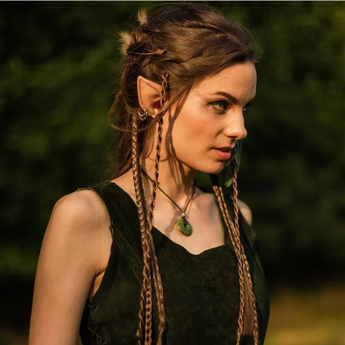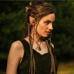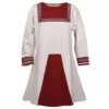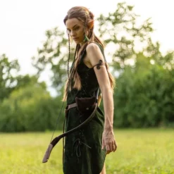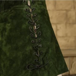 This dress is suitable for reenactment, cosplay and LARP. The dress is made of suede leather. The dress has a lacing. This ensures that the dress can adapt to the model of the wearer. The dress has a quirky design which makes it playful, but mainly unique.