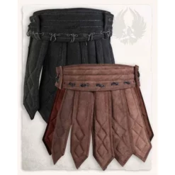This product is suitable for cosplay, photoshoots and LARP. This gambeson skirt is made of suede and cotton. The top layer is made of suede that is quilted on a cotton base. The skirt can be closed with the two belt buckles on the back. Because the skirt consists of various flaps, the wearer has a lot of freedom of movement.