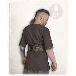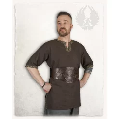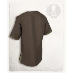 This tunic is suitable for Viking re-enactment, LARP and Cosplay. This tunic is made of cotton and has a beautiful herringbone motif. The tunic has an embroidered braided V-neck and embroidered hems at the sleeves. This gives it an elegant but above all noble appearance.