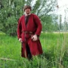 This tunic is suitable for Viking reenactment, LARP and Cosplay. The tunic is made of cotton and has a beautiful authentic herringbone pattern. The tunic has a cut-out v-neck that gives it an elegant look.