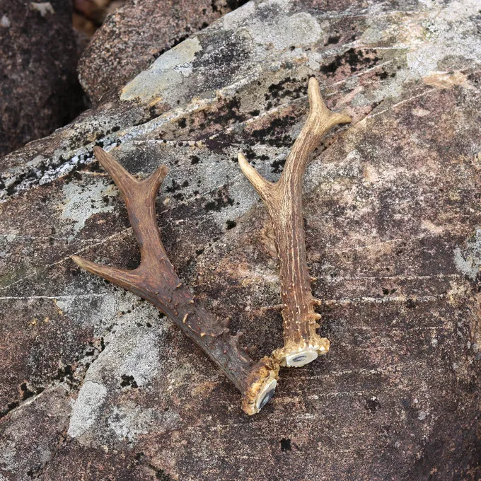 Every year a deer sheds its antlers.Then new antlers grow.Our antler sets are composed with antlers that have been found in nature.We work with someone who is licensed to collect these antlers.The antlers come from Germany.