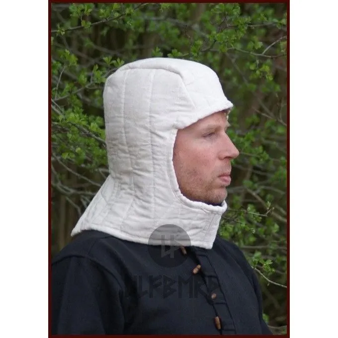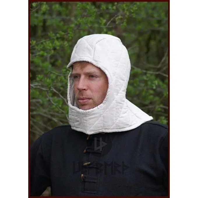 This arming cap is made after a 15th-16th century original. Arming caps like this were mainly used in helmets with a visor like the closed helmet, bascinet or armet. The original is nowadays part of the Hofjagd und Rüstkammer in Vienna.