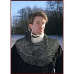 This sturdy gorget is made of roughly woven cotton. It is thickly padded and provides optimal protection. It is made for re-enactment and full contact martial arts.